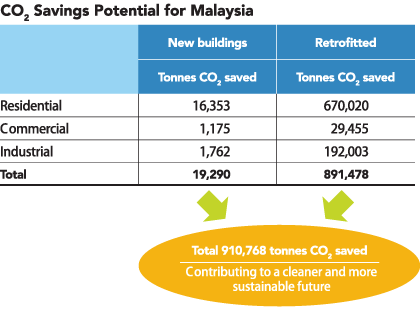Energy Efficiency Your Ultimate Solution for Low Energy Building Soaring energy prices and concern about climate change from man-made emissions of carbon dioxide have propelled energy efficiency to the top of the agenda globally. Daily, more and more greenhouse gases are generated through human activities which includes the burning of fossil fuel, land-use change and agriculture. Gasses such as carbon dioxide, nitrous oxides and methane, form a blanket around the earth’s atmosphere. These gases trap and reflect the re-radiated solar energy from the sun, similar to the greenhouse effect of letting the sunshine in but stopping the heat from escaping. Over time, this causes an increase in the overall temperature of the earth, known as global warming. Climate change is the direct result of global warming, affecting people’s health, changes in food and water supplies, melting of glaciers which cause coastal flooding, interruption of ocean’s ecosystems and severe droughts in various places. If less energy is consumed, the amount of fossil fuel burned will also be reduced. As a result, there will be less emission of greenhouse gasses which can ultimately reduce the threat of global warming. ![]() (MIMG, First Malaysian Study On Mineral Wool Insulation In Malaysia, September 2009, p. 6) In various researches and reports in Europe and North America, building has been identified as one of the big energy wasters, accounting for about 40% of energy used mainly for heating and cooling. With increasing global economic and social growth, the world’s energy consumption is expected to soar. Of this energy, 86% is being fueled by dwindling, non-sustainable natural sources that further add to man-made carbon dioxide pollution. In hot tropical climates like Malaysia, the use of air-conditioners contributes greatly to energy costs. A study done by CEDTEM (Centre for Environment, Technology & Development Malaysia) in 2006 for Malaysian Urban Household Energy Consumption Patterns showed that air-condition and fan accounts for 35% of the average electricity consumption by residential end users. This means that reducing the cooling costs can have a significant impact on energy consumption, which can ultimately reduce the strain of fossil fuel supplies and the country’s electricity grid demand. The LEO (Low Energy Office) building of MEWC (Ministry of Energy, Water & Communications) is an example of where up to 50% energy costs can be reduced. ![]() (MIMG, First Malaysian Study On Mineral Wool Insulation In Malaysia, September 2009, p. 7) In 2006, the Energy Commission acting chairman said that even at a low demand rate of 4.7% a year, Malaysia’s energy consumption by 2020 would reach 74.1 million tonnes of oil which is 10 times the amount used in 1980. He believes that this will inevitably cause constraints on the nation’s ability to meet future energy needs, unless energy-efficiency measures are taken. ![]() LESS ENERGY CONSUMPTION, LESS C02 EMISSION |